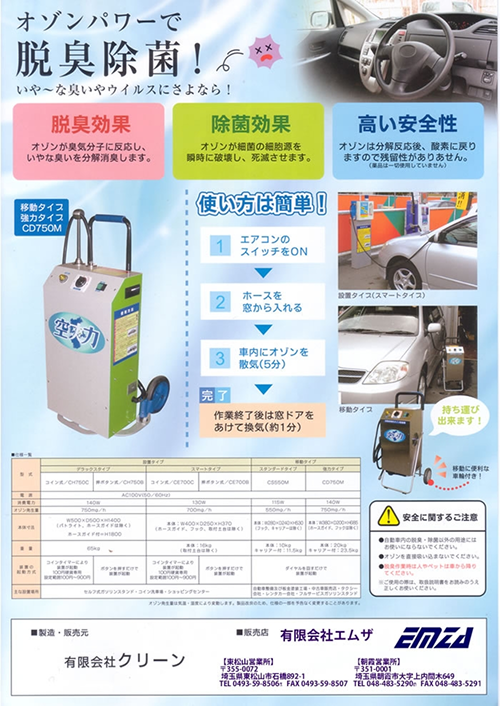 その他、車両ルームクリーニングサービスやオゾン脱臭機も取り扱っております。